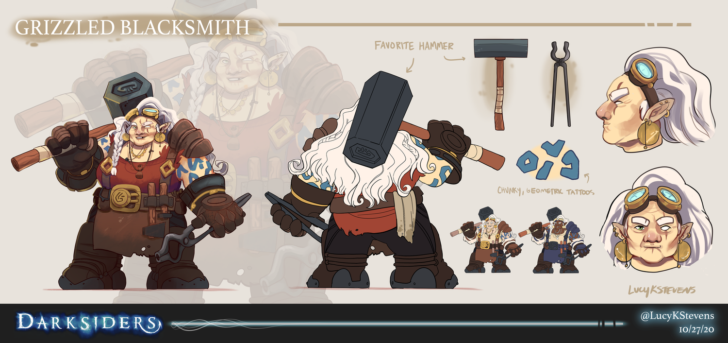Blacksmith character designed for Trent Kaniuga’s monthly character design challenge for the game ‘Darksiders’. Personal work.